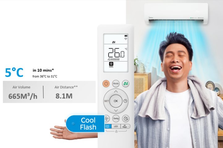 Even at high temperatures of up to 55°C, Midea Inverter still operates effectively, beating heat and providing optimal cooling to the room.