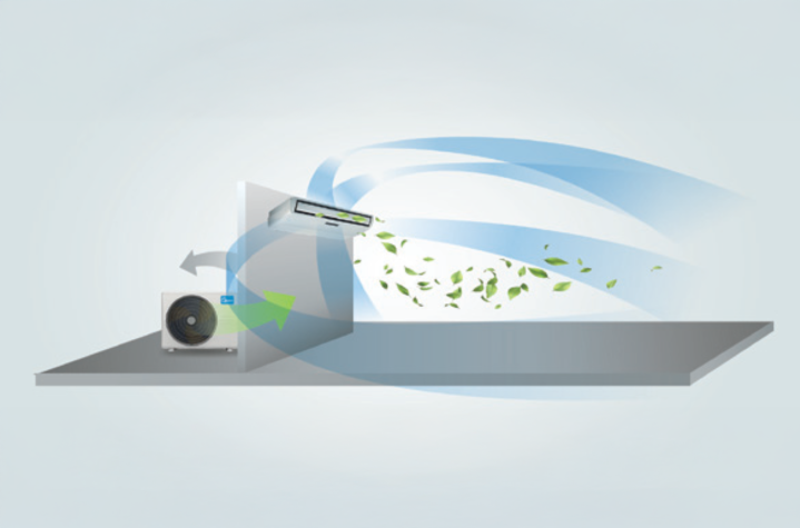 Air outside can be led into the room via a connection pipe, which keeps the indoor air fresh and healthy.